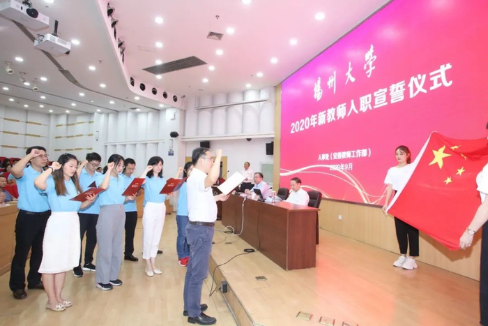 今天下午,乘风破浪的扬大新一批“青椒”们相聚一堂,共同迎接他们的第一个教师节。这是学校为2020年新入职教师准备的特殊的教师节礼物——入职宣誓仪式暨岗前培训主题报告。