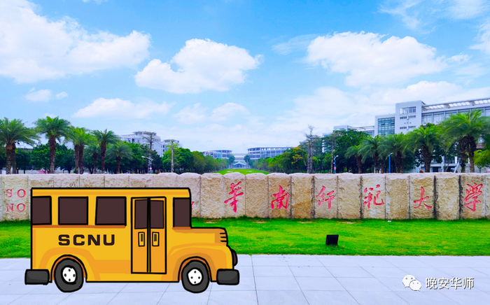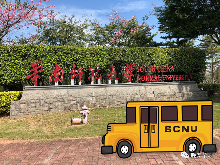 (2)乘坐地铁5号线(文冲方向),在珠江新城站下,转乘地铁3号线(天河客运站方向),在华师站下车(E口出),右转步行约100米至华南师范大学西门。
