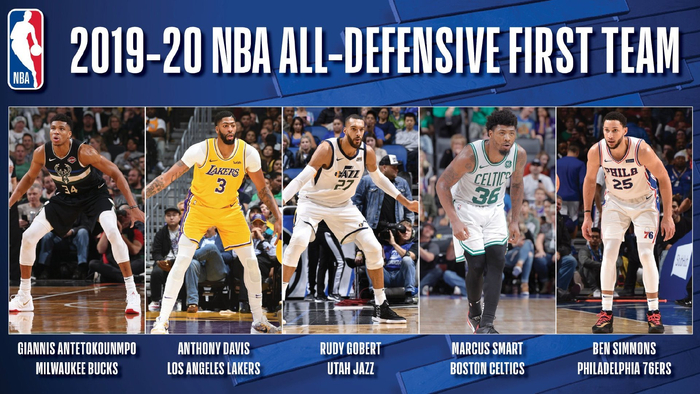 NBA2019-2020赛季最佳防守第一阵容。