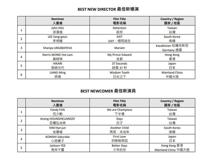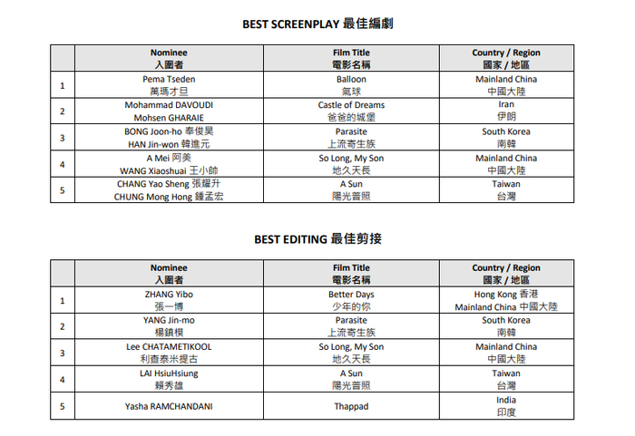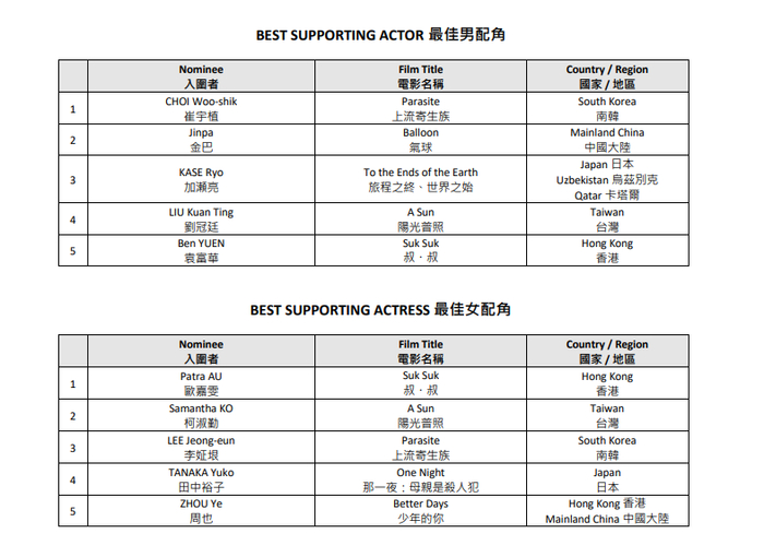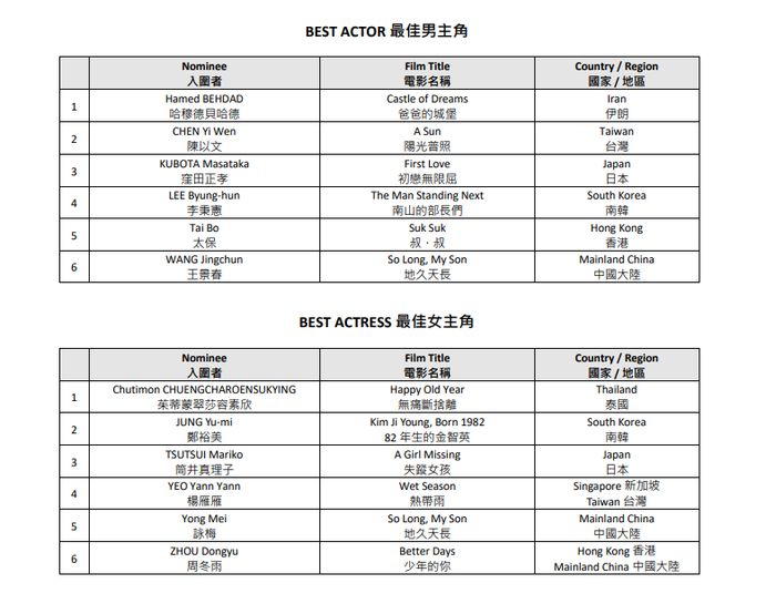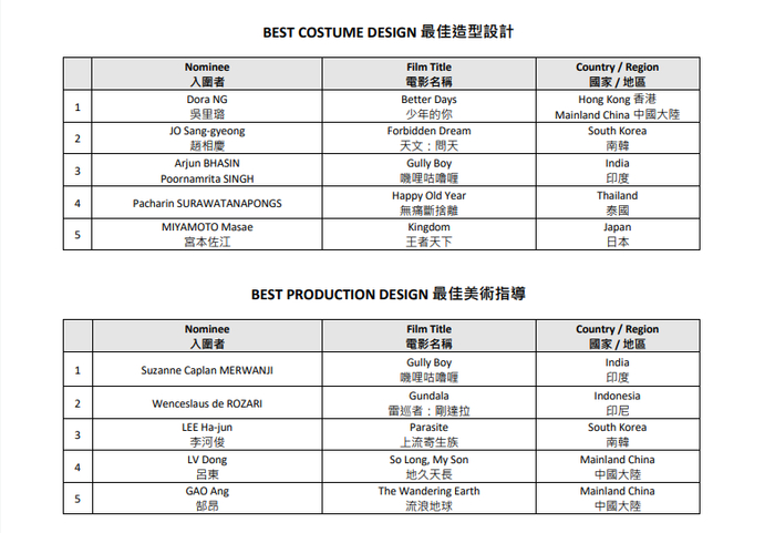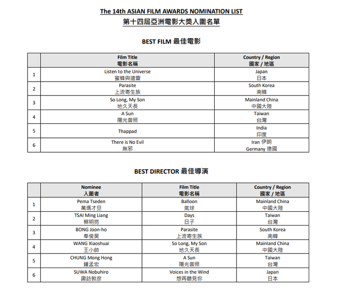 本届亚洲电影大奖受新冠疫情影响不设颁奖礼,将于10月14日直接公布获奖名单。