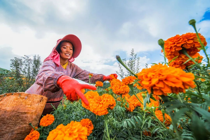 农民脸上绽放出灿烂的笑容