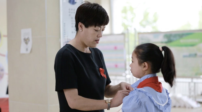 这时,有护士领着一个女孩儿走在走廊里,“胖嘟嘟的,大概只有七八岁。”那是后来就读红丝带学校的第一批学生之一。女孩儿跑到刘丽萍跟前,盯着她看,“觉得你一个大人在那儿哭什么闹什么?”