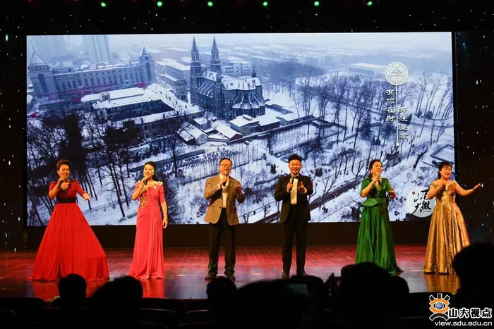 典礼上,学校爱歌者协会演唱了《我的山大我的家》,最后在激越的《山大校歌》声中圆满结束。