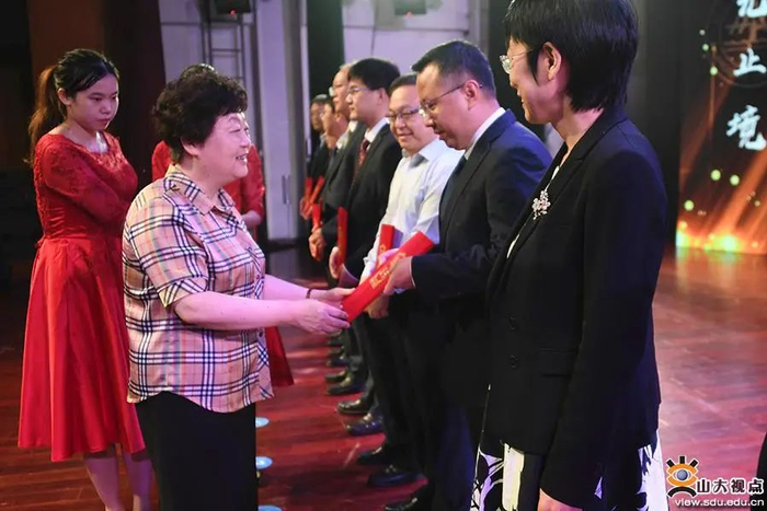在“不忘初心、忠诚作为有担当”篇章,2020年度“山东大学优秀教师”“山东大学优秀共产党员”“山东大学先进教育工作者”“山东大学优秀党务工作者”“山东省教书育人楷模”荣誉称号获得者依次上台领奖。