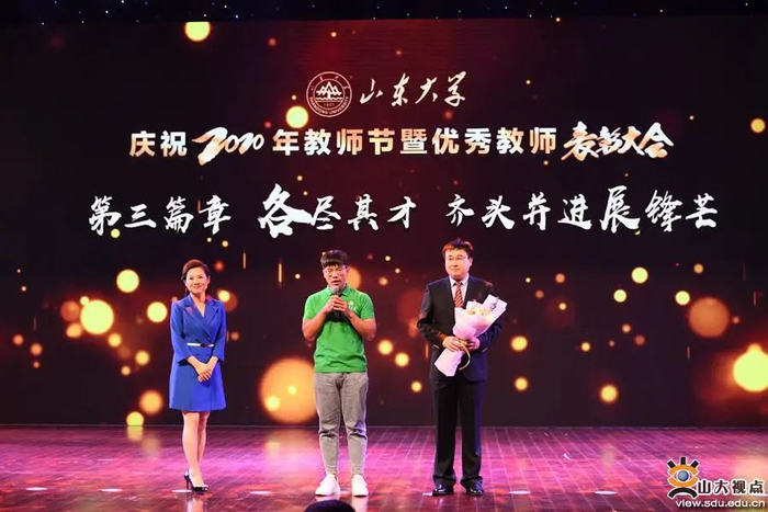 在“各尽其才、齐头并进展锋芒”篇章,2020年度山东大学“优秀临床教师”、“先进医务工作者”、“山东大学教学终身成就奖”、“山东大学教学卓越奖”获得者、“我心目中的好导师”、“科研突出成果奖(自然科学)”、“科研突出成果奖(人文社科)”获得者,支教扶贫、援藏援疆教师干部代表依次上台领奖。