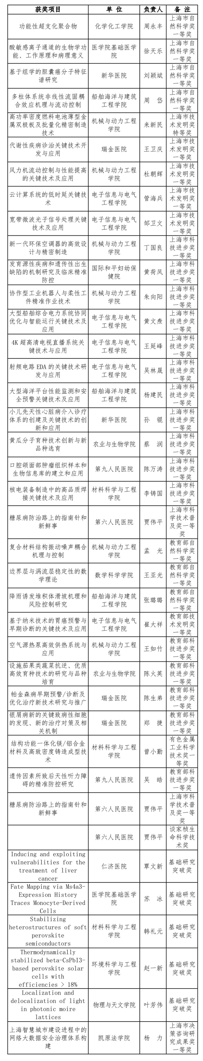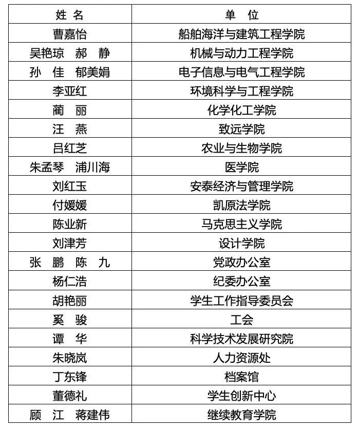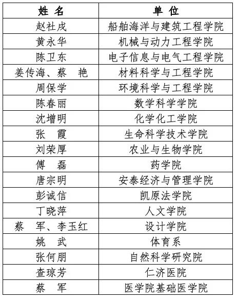 瑞金医院重症医学科团队、化学化工学院大学化学教学团队、媒体与传播学院全英文教学团队共3个团队获得2020年“教书育人奖”集体奖一等奖。