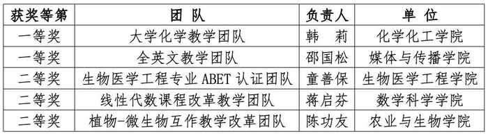 “教书育人奖”集体奖(学院改革类)获奖名单
