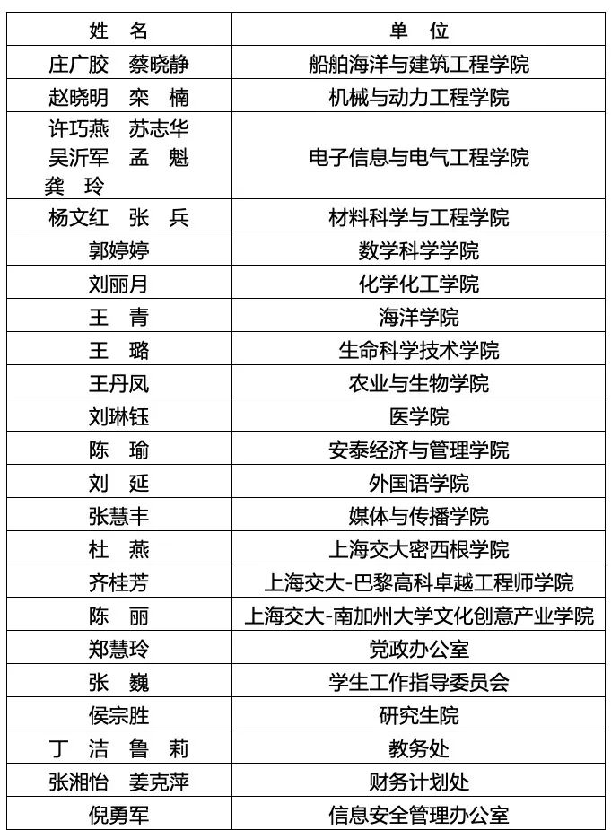 “教书育人奖”提名奖(个人奖)获奖名单