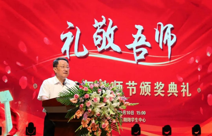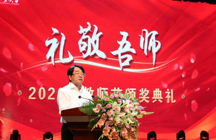 党委书记张炜向全校教师致以节日的祝贺!向荣休教师致以崇高的敬意,向新入职的教师表示热烈的欢迎!对受到表彰的2019-2020年学校优秀教师和先进集体表示祝贺和感谢!并对全校教师提出三点希望:一要聚焦主责主业,坚持育人为本;二要加强师德师风建设,做“四有”好老师;三要注重价值塑造,促进改革发展。