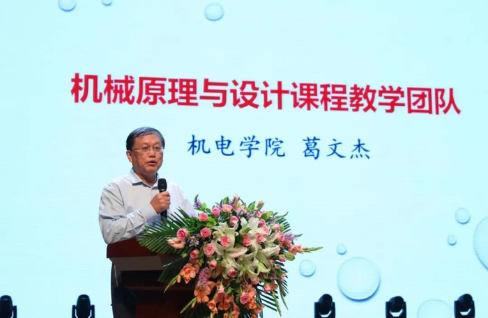 “团队本着‘传承、改革、创新、引领’的课程建设理念,坚守着本科教学一线和课堂教学育人主阵地,坚守着课程基层组织教学活动和不断完善课程与教材建设的优良传统,坚守着课程育人的优秀课程教学文化传承与创新。”三全育人先进集体代表机电学院葛文杰老师分享课程建设中的所思所想,“保持教师教书育人的本分,是我们的初心。”