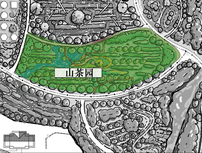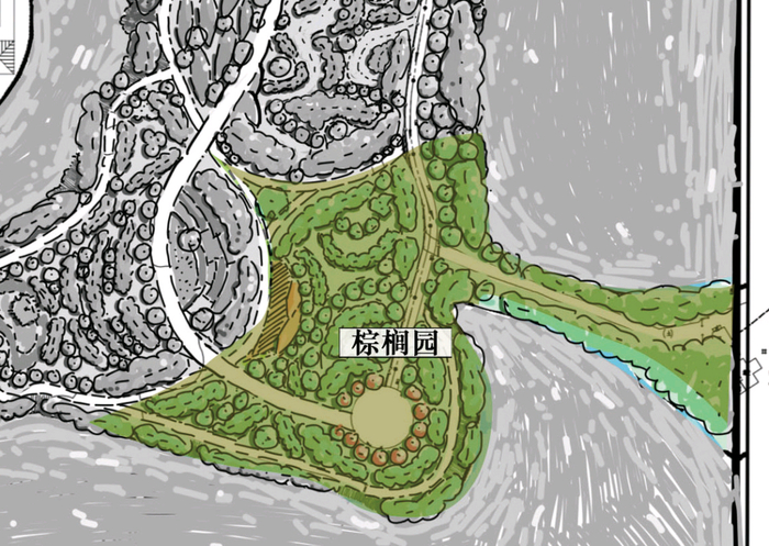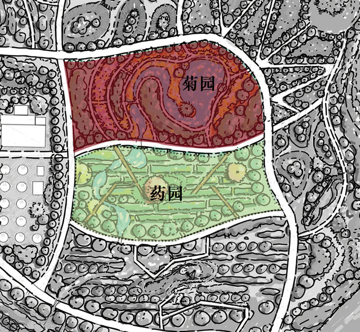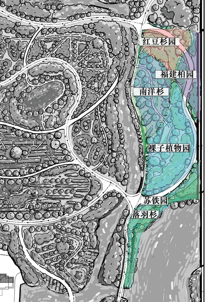 南平园区文化小广场的周边可集中展示南平具有代表性的乔灌木和果树等。