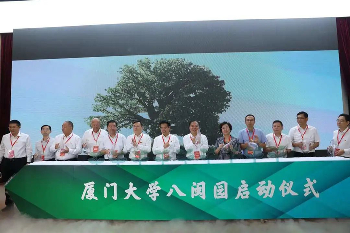 在迎接百年校庆,谋划新百年建设发展之际,我校继续探索校地融合发展新思路、新模式,为此,学校以“沐绿水青山、育八闽英才、建一流大学”为思路,在翔安校区建设一座具有福建九市一区植物特色与人文景观的“八闽园”,着力打造实践、育人、科研、教学的一体化平台。八闽园位于翔安校区东北部原有植物园地块,总面积约160亩,既是一座福建省九市一区的“植物园”,也是一座“人文园”,建成后将作为来自世界各地的厦大莘莘学子了解福建省情、市情、民情的育人平台,成为校地合作、友谊桥梁的新地标。会上,福建省及九市一区领导和我校领导共同启动了厦门大学“八闽园”建设并于大会结束后来到园地植树添绿。