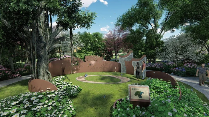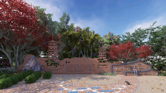 福州园区的文化小广场占地约300平方米,小广场会采用具有代表性的福州文化元素如:马尾船政局、三坊七巷、寿山石文化、林则徐等进行艺术化的处理,通过耐候钢板进行雕刻展现福州文化,广场小而精,在不破坏生态植物园的前提下,概括性的展现福州的人文历史和植物特点。