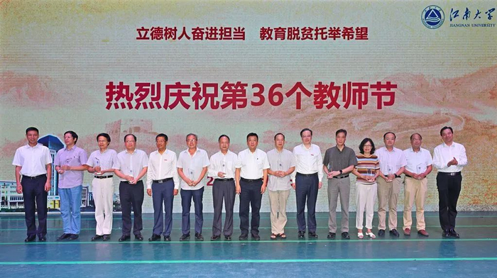 无锡市委副书记、市长杜小刚,市委常委、常务副市长朱爱勋,市政协副主席金元兴,市政府秘书长张立军,市政府副秘书长、市政府办主任相江,市政府副秘书长严健媛,市教育局副局长符菊成等一行7人莅临我校,与江南大学广大师生共同庆祝第36个教师节。