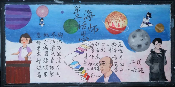 老师都是知识的领航者,他们用汗水编织书籍,搭起智慧的天梯,托起每一个学子遨游于璀璨的知识星际。每一个智慧星球,遍布着学子探索的足迹,年华更迭,它又目送少年起航分离,迎来斑驳的两鬓,化为时间的记忆。