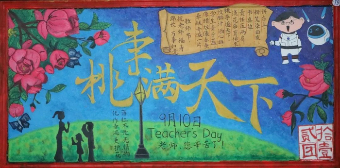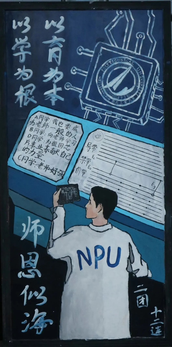 看完各位多才多艺同学的板报,大家一定也涌起了对老师的感恩。莺飞鱼跃师者助,长久真情满园春。如今更睹凌云志,满目清风恰自来。最后让我们一起为全体西工大教师献上最真挚的祝福——教师节快乐!