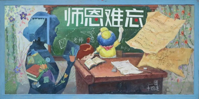 花落庭前叶,风吹柳下青。风拂万里,伴随弟子过青廊。出山阴,青云志,万世师表永难忘。老师陪伴着我们的成长,指引着我们的方向,那么当同学们的军训遇到教师佳节,又将在一块块的板报上碰撞出怎样的火花,让我们一起来欣赏2020级军训第二期板报成果,在感受西工大学子对老师们殷殷之情的同时也pick出你心中的No.1吧!