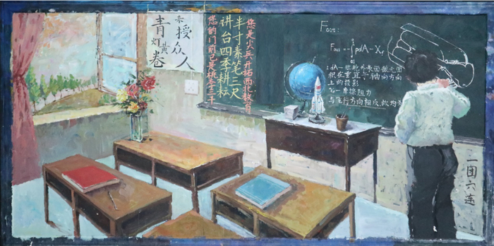 一腔热血树人,三尺讲台立言。此画以第一人称视角,还原了老师在课堂上的飒爽英姿。同学们在春风拂面、桃李飘香之中,获得了知识,锤炼了技能,也暗示了老师桃李满天下。感谢老师们多年来对我们的栽培与奉献!