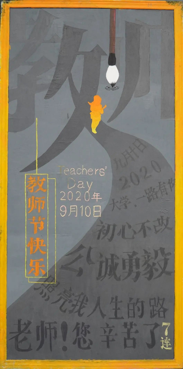 教师两个大字为主体部分,正宋体字彰显对老师崇高的敬意;由“教”字引出的一条知识大道,老师是我们在这条道路上的引路人。在教师节来临之际,一团七连衷心祝愿所有教师节日快乐!