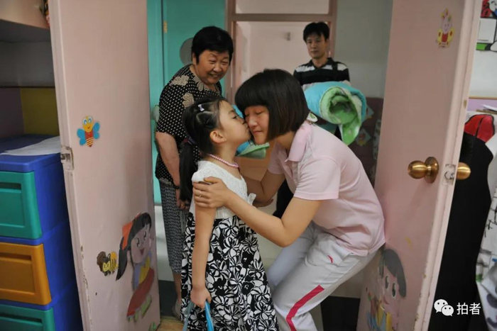 △ 2010年6月30日,北京市丰台区一幼儿园,孩子放学后跟老师亲昵告别。摄影/新京报记者陈杰