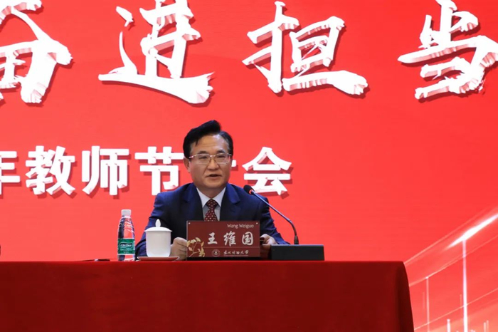 吕炜代表学校领导班子向奋斗在教学科研、管理服务一线的全体教职员工致以节日祝贺,向为学校事业发展奉献青春和智慧的荣休教职员工表示衷心感谢,向开启人生新起点的新入职教职工表示热烈欢迎!他指出在过去的一年中,在常态化疫情防控和稳步推进教育教学的双重考验下,我们的脚步从未停止。全体教职员工兢兢业业、勇担使命,用实际行动诠释了东财人的责任与担当,在平凡的工作岗位上作出了不平凡的成绩。希望全校教师不忘立德树人初心,牢记为党育人为国育才使命,积极探索新时代教育教学方法,不断提升教书育人本领,为培养德智体美劳全面发展的社会主义建设者和接班人作出新的更大贡献!在建设“国内一流、国际知名、特色突出的高水平财经大学”的进程中,不负时代、奋力前行!