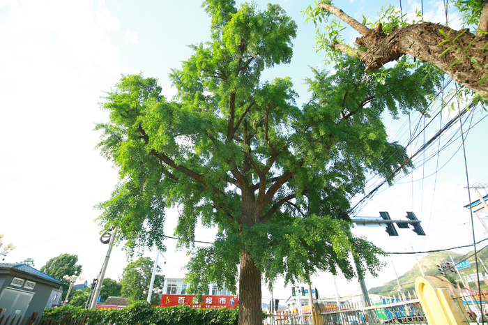 树龄超500岁的银杏生长在大华山村西十字街口。张健庭 摄