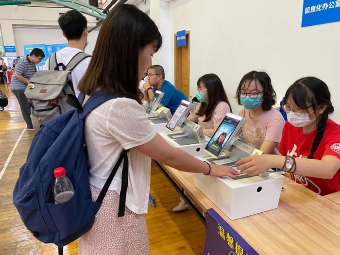 今年继续在各校区实施人脸识别自助报到,通过人脸识别系统每位新生只需两秒即可实现报到。自助系统的使用不仅为研究生提供便捷,缩短报到所需时间,提高报到现场工作效率,也大大提升了科技感和新鲜度。