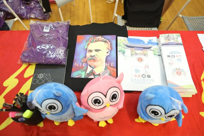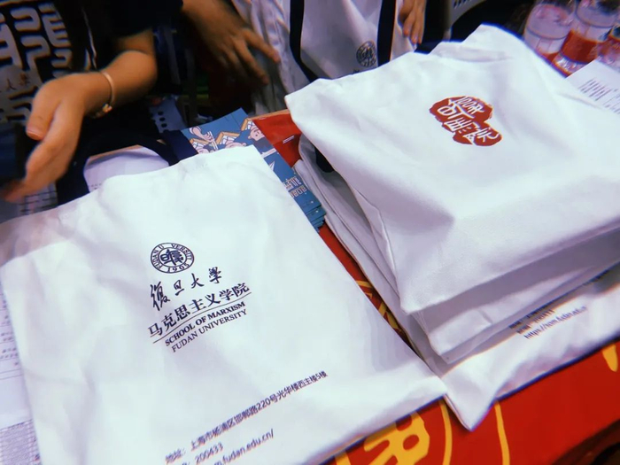 在邯郸校区,来到现场的新生收到了研究生会特别提供的钥匙扣和校园一景为主题的胶带。马克思主义学院为新生特别准备了装有体温计、学院特色的笔记本和文件夹。