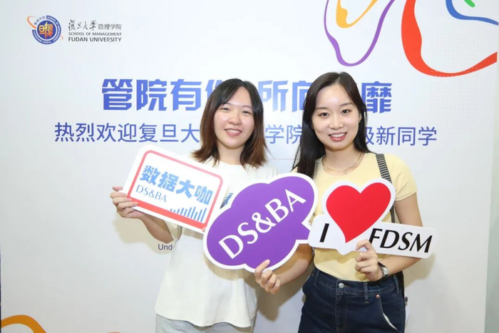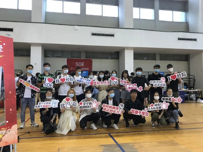 管理学院、经济学院和泛海金融学院都制作了各式各样的KT板,搭建具有学院特色的背景墙、设计“大头照”相框,提供趣味手拿标语牌,为新生拍照留影。