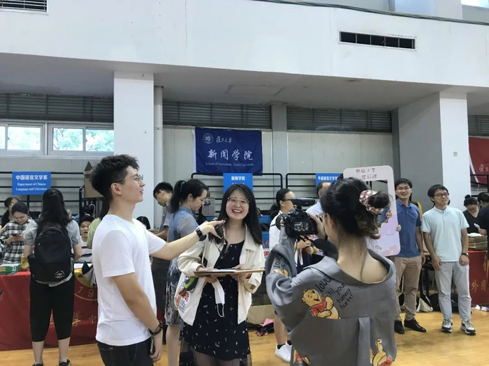 新闻学院通过采访新生,录制影像记录每位新生的入学感言。为他们踏入复旦的第一天留下宝贵纪念。