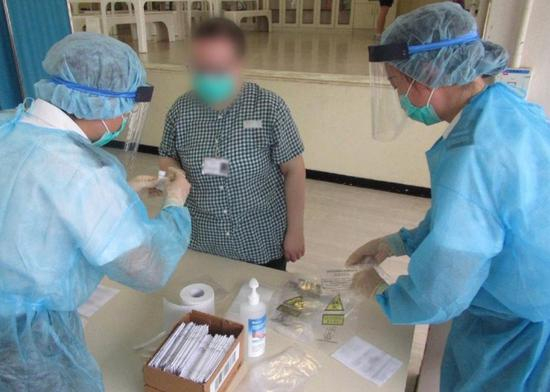 香港特区政府惩教署为香港在囚人员进行新冠病毒测试。 图源:香港特区官网