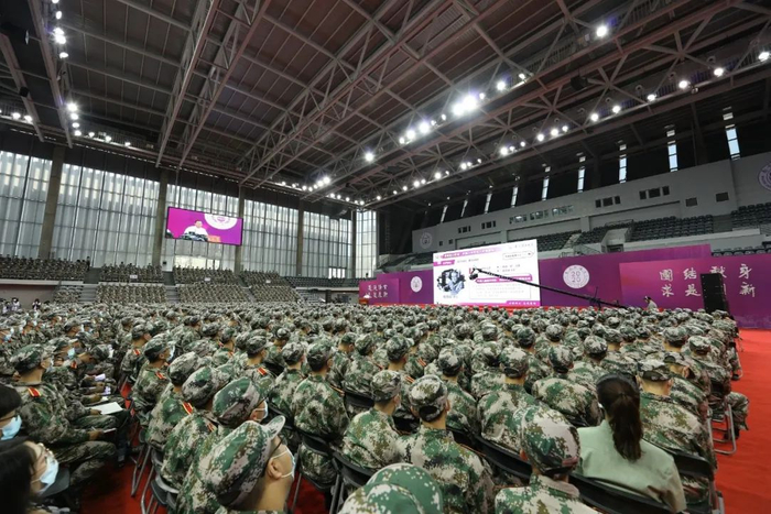 付梦印校长为同学们细细叙述了南理工办学发展的历史沿革,用一幅幅烙印时代痕迹的图片、一个个鲜活而动人的事例,把学校67年来培养的一批又一批载入史册的军工大师、新时期引领国家科技创新的鸿儒硕学、扎根各行各业为国奋斗不止的精英翘楚展现在每位同学的眼前,而学校在武器装备研制领域、国防创新领域及国民经济建设中创造的诸多“第一”更是让大家骄傲不已,这些累累硕果背后凝结的是几代南理工人的无穷智慧与辛劳汗水,是学校“为党育英才、为国铸利器”使命担当的真实写照。