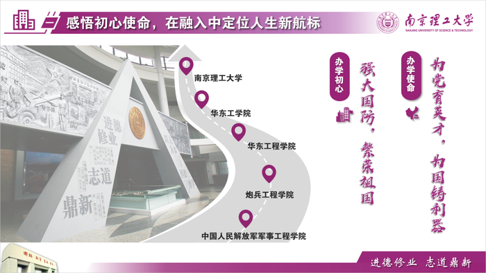 在这“理”,一代又一代的南理工人,秉承“团结、献身、求是、创新”的校风,勤勤恳恳、默默耕耘,用一个个研究成果筑起保卫国家、保卫人民的钢铁长城。