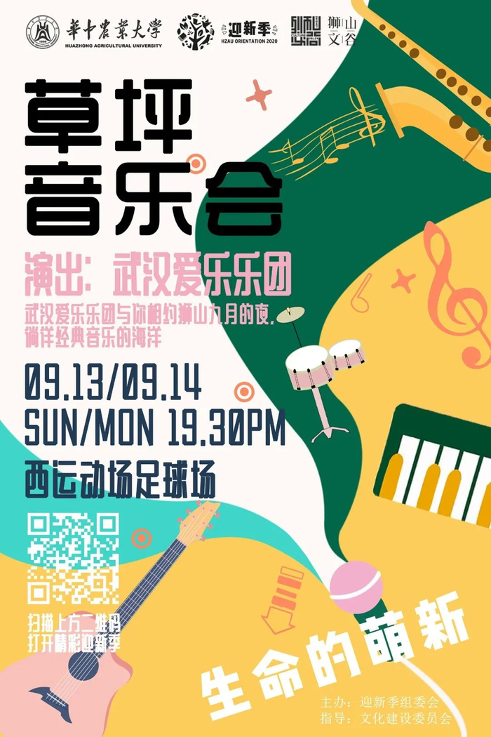 草坪音乐会 | 9月13日19:30;9月14日19:30 | 西运动场足球场 |