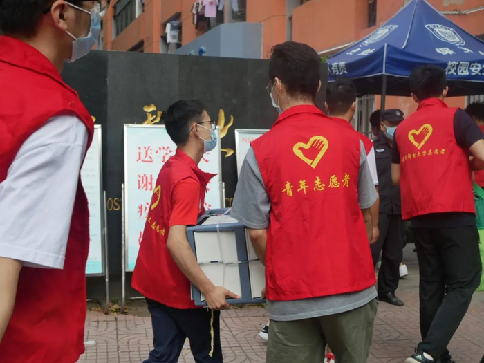 这里还有辛勤工作的小班主任、志愿者在骄阳下、在夜幕中迎来送往。