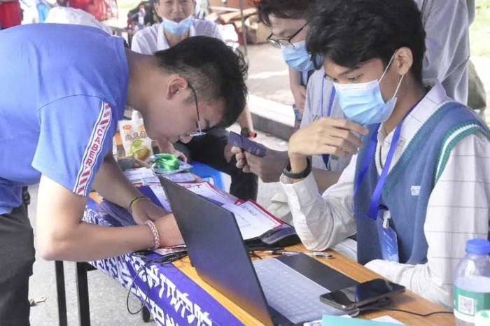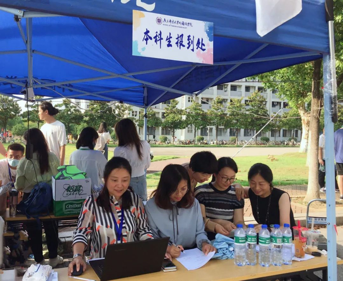 自发前来做志愿的学姐学长们带给了萌新们“家”的温暖。