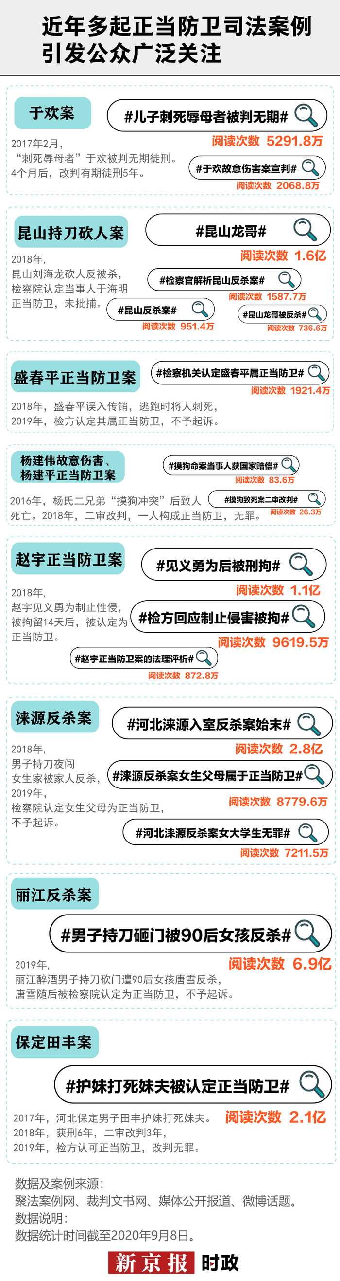 在赵宇正当防卫案中,赵宇见义勇为致不法侵害人重伤,该案的#见义勇为后被刑拘#、#检方回应制止侵害被拘#等新浪微博话题,总阅读量超6亿条,总讨论数超26万条。