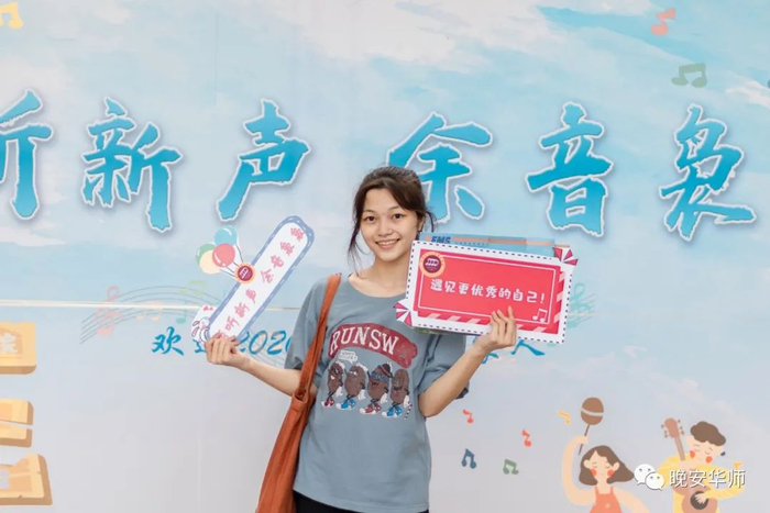音乐学院院楼门口布置了人偶、气球,与“2020 华师爱你”的立牌遥相呼应,营造温馨亲切的氛围。院楼内设有专门合照的区域,供新生合影纪念。报到后新生可以填写一张明信片投递于“未来信箱”,对大学生活投入属于自己的期待。