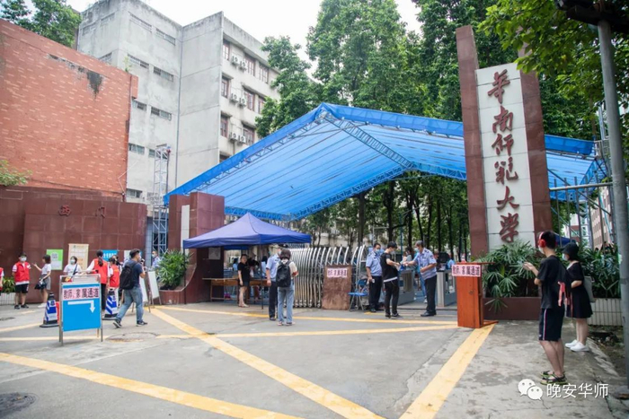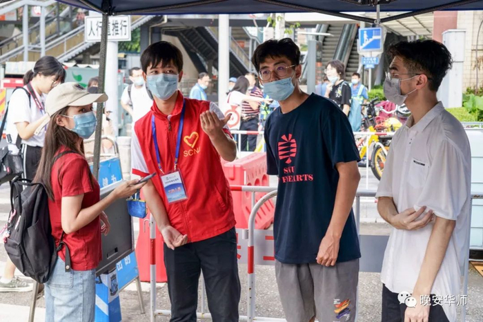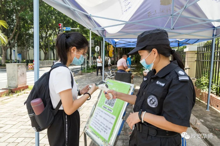 早上7点,华师正门处所有工作人员均已到岗。正门既是学校的名片,给新生留下对华师的第一印象,又是防疫把关的重要节点,保证学校防疫工作正常进行。