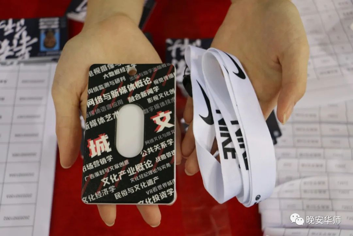 城市文化学院给每位新生准备了特色一卡通卡套,背面印有学院的各专业课程,正面则是学院缩写和学院元素图案,如书法和剪辑,是属于城市文化学院新生的独特标志。