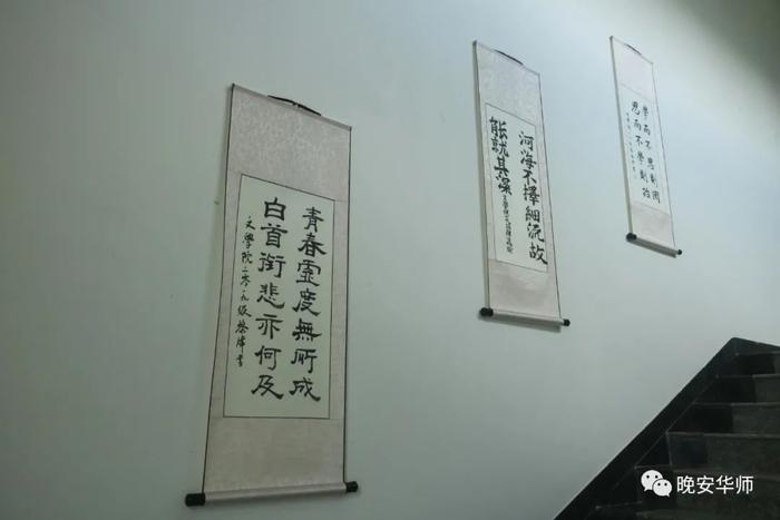 早上10点,文学院党委书记姚光忠、副书记郭妙燕一行走访宿舍,了解新生入学情况。文学院还为新生准备了充满古风韵味的签名板,文化长廊上是2018级、2019级学生近几天的作品,一路走过去,可以领略软笔书画的魅力。长廊的起点和尽头是学院学生的工作剪影,既充满了文学气息,又展现了文学院的工作特色。此外,文学院还同步举办线上新生家长会,家校联动,从“新”开始。