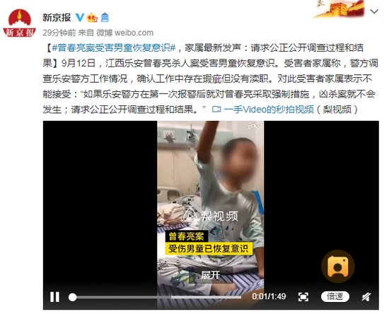 原标题:曾春亮案受害男童恢复意识,家属最新发声:请求公正公开调查过程和结果