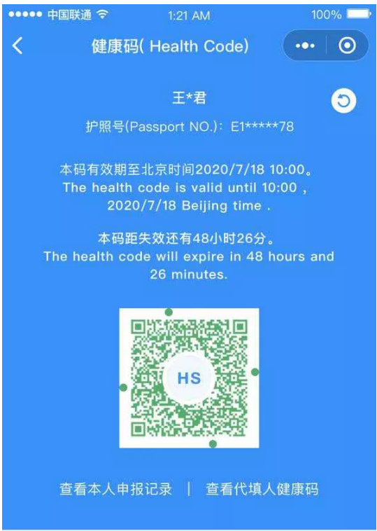 (二)中国公民应尽量不晚于飞机起飞前48小时,通过防疫健康码国际版微信小程序,向使馆申报个人情况并拍照上传核酸检测阴性证明。使馆复核通过后,当事人可获得带“HS”标识的绿色核酸码。