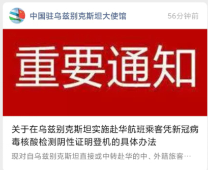 速看,中国驻乌兹别克斯坦大使馆发布重要通知!