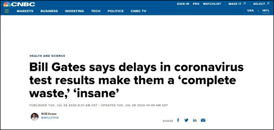 CNBC:美国新冠病毒检测结果出得慢,比尔·盖茨:完全就是浪费