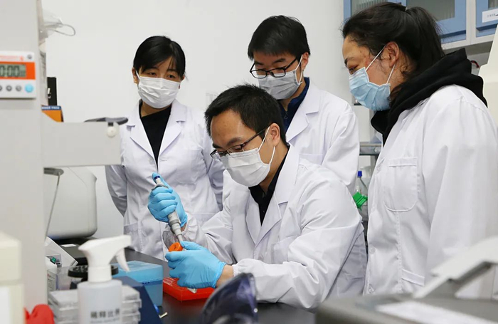 图②:2020年3月,参与新冠疫苗研制的北京理工大学团队正在开展实验研究。