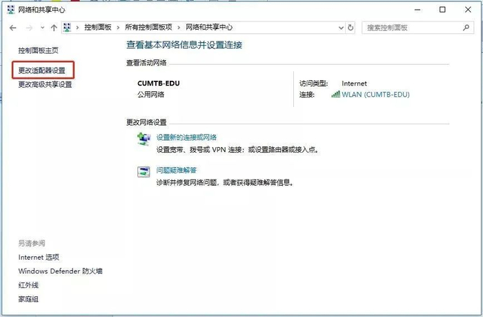 选择“更改适配器设置”,右键点击“本地连接”——“属性”——“Internet协议版本4(TCP/IPv 4)”,在“常规”页面中将IP地址和DNS服务器地址设置为“自动获得IP地址”、“自动获得DNS服务器地址”,设置完成后点击“确定”,在浏览器中输入202.112.208.3,登录成功后会弹出学校官网页面即可接入校园网。
