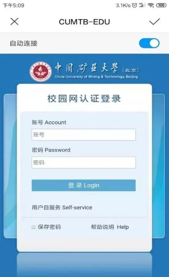 使用无线网需要实名登录认证,连接CUMTB-EDU后,自动弹出上网认证界面(如果未弹出认证界面,需在浏览器中输入202.112.208.3),输入统一身份认证的账户名和密码登录,登录成功会弹出学校官网页面,即可接入校园网。