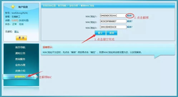 登录人数达到上限后,您需自行解除MAC绑定。访问网址:10.100.10.4/Self,登录账号后,解绑当前被绑定MAC,打开浏览器重新认证。