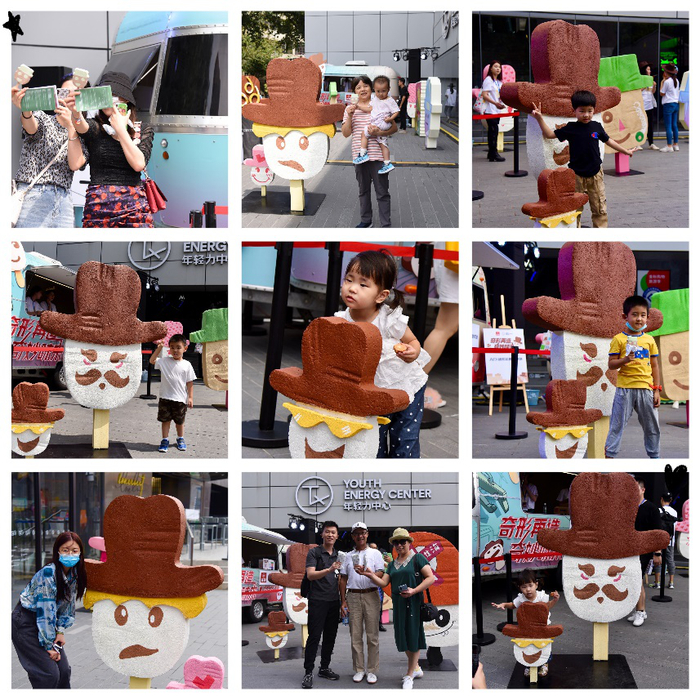 今年6月,一个高6.6米的“巨无霸”花脸娃娃雪糕空降百联TX淮海户外广场,潮流与经典融合,承载着童年满满记忆的娃娃雪糕,瞬间激起了80、90后的回忆潮,吸引来不少达人拍照打卡。光明冷饮此次快闪活动是以此巨型娃娃雪糕雕塑为灵感,打造66个再造奇形娃娃寻觅乐园,突破经典娃娃形象风格,迎合“Z世代”的奇妙创意,旨在满足消费者的独特体验。